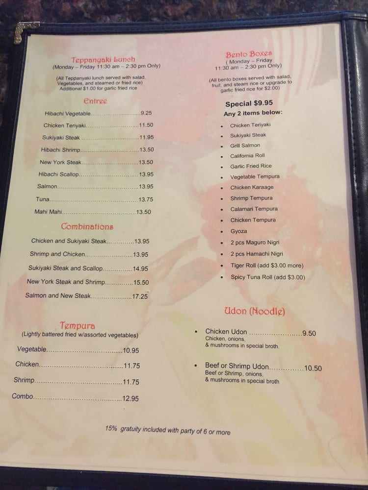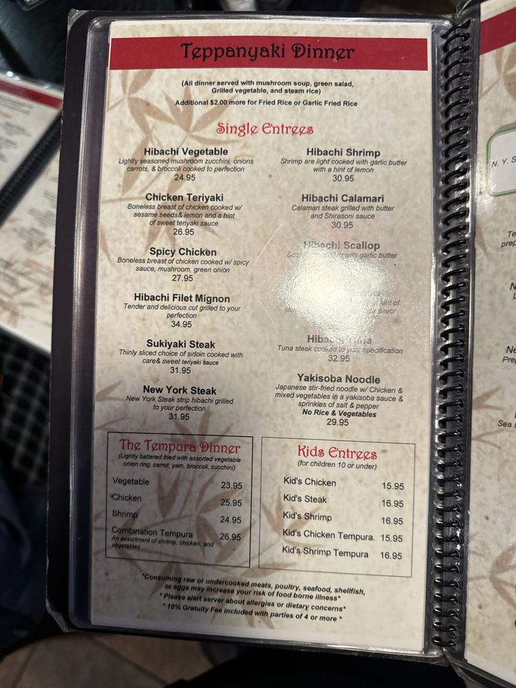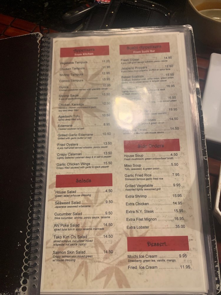 Shirasoni Japanese Sushi & Steakhouse Menu